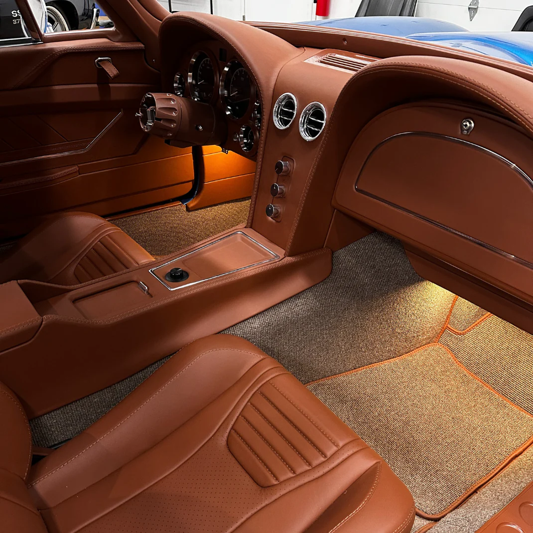 Every interior we create is built to be as unique as the vehicle it belongs to. At pg, we design and fabricate complete one-off interiors that blend modern precision with timeless craftsmanship. From .063" aluminum panels and composite design layers to hand-stitched leather and custom-machined details, every element is engineered to fit seamlessly. We collaborate with each client to understand their vision — from seating preferences to hidden features like cupholders and chargers — ensuring the finished cabin is both functional and refined. The result is a clean, tight design language that transforms the driving experience and elevates the entire build.