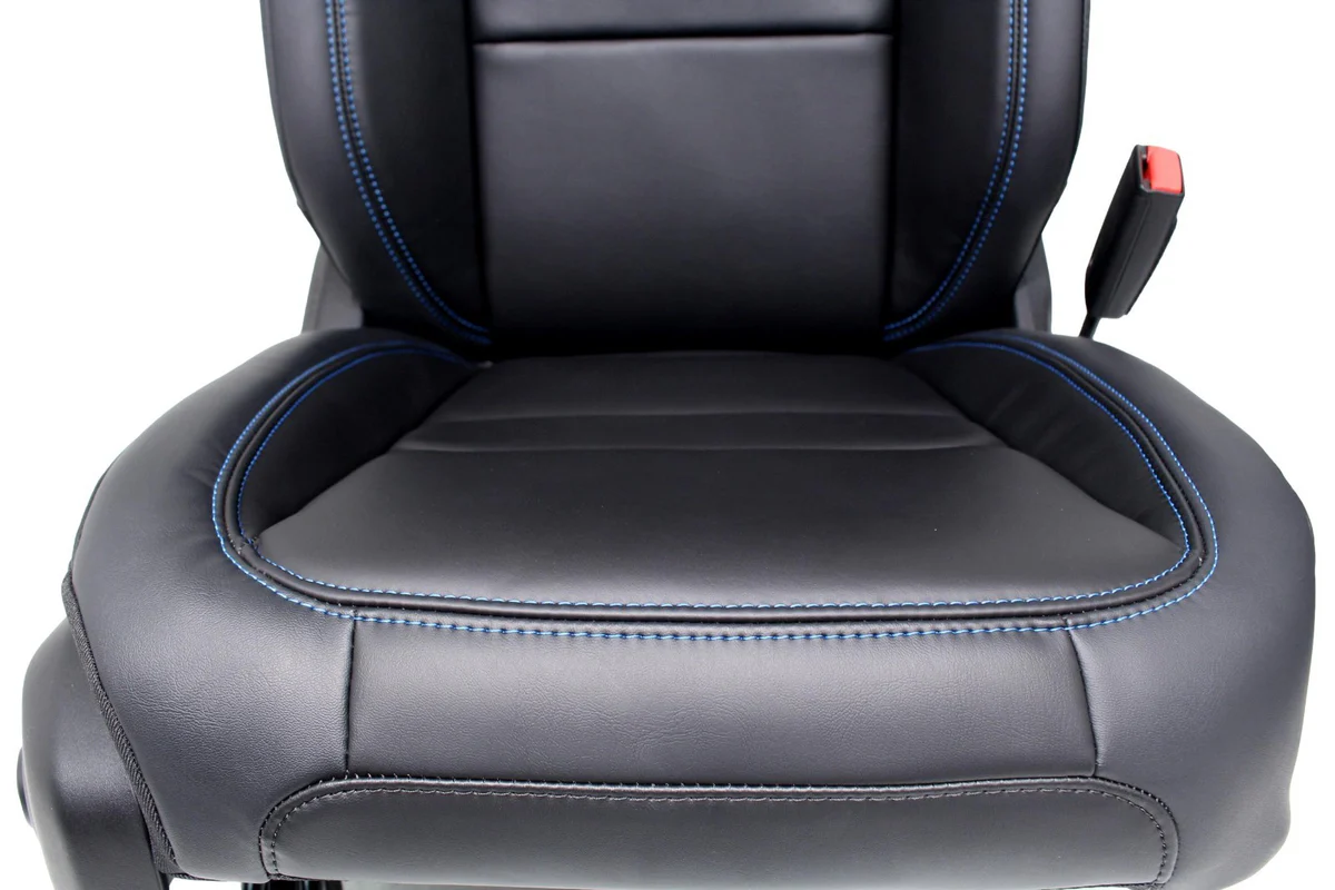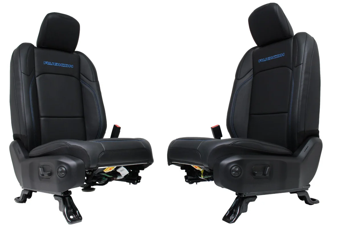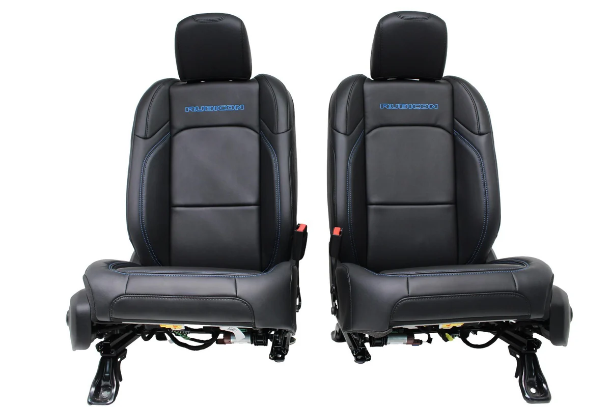 18-25 Jeep JL JLU JT Wrangler Front Seats, Black Nappa Leather w/ Blue Stitching