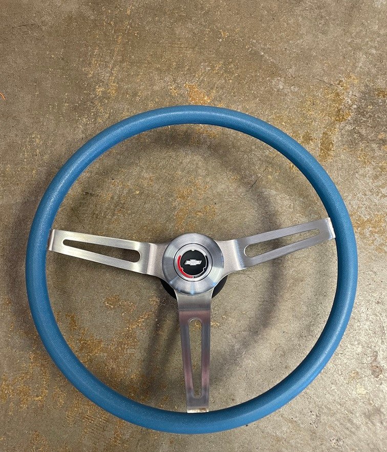 1955-87 Chevy/GMC All Models Blue Comfort Grip Steering Wheel (Complete w/ Wheel, Hub, Horn Contact Plate & Horn Button