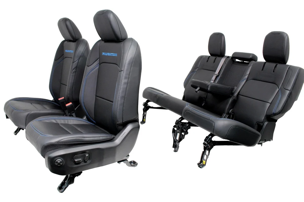 2018-2025 Jeep JL JLU 4xE Wrangler Seats, Black Nappa Leather w Surf Blue Stitch