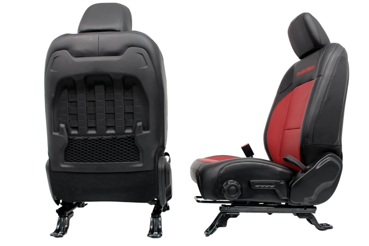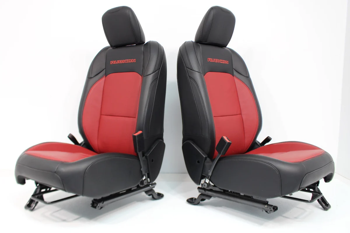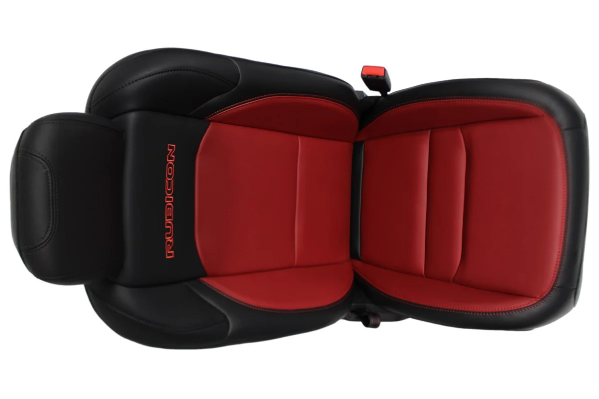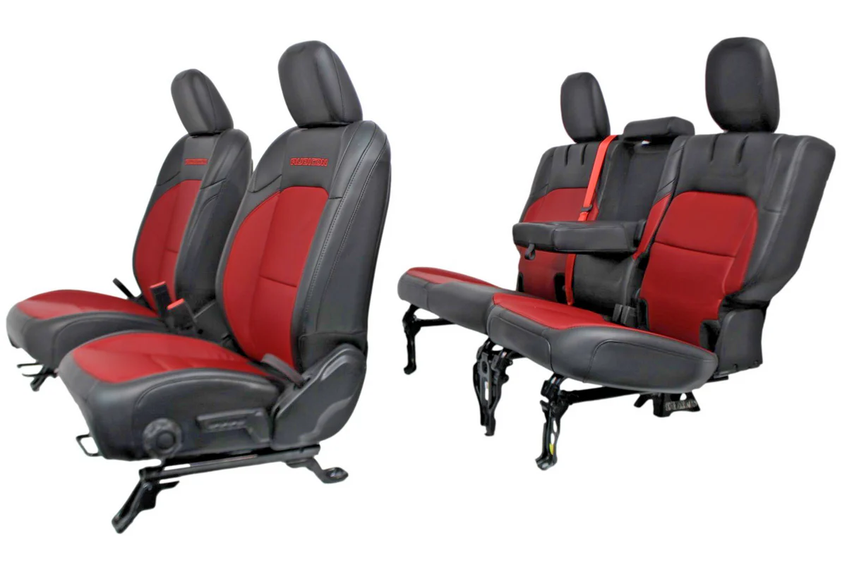 Includes front and rear seats. These are OEM – not aftermarket! 20th Anniversary Edition Red & Black Leather. Removed from a 2023 Wrangler 4xE Rubicon at 10k miles, mint condition! Fits 21+ Wrangler JL 4xE, install may require re-using your original seat harness. Contact us for details.
