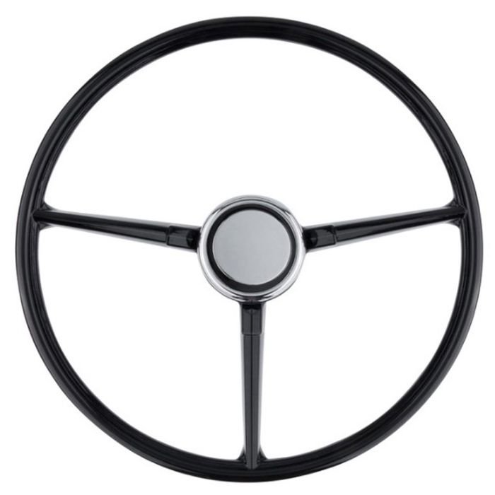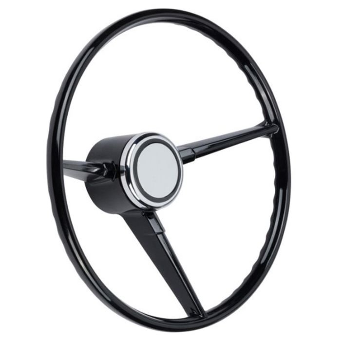 This 15-inch Steering Wheel from American Retro Steering Wheels maintains the classic look inside your 1967-1968 Chevy or GMC truck while offering a more modern driving experience! It is two inches (2″) smaller in diameter than the stock steering wheel but features the all-black color and 3-spoke design that your truck came with.