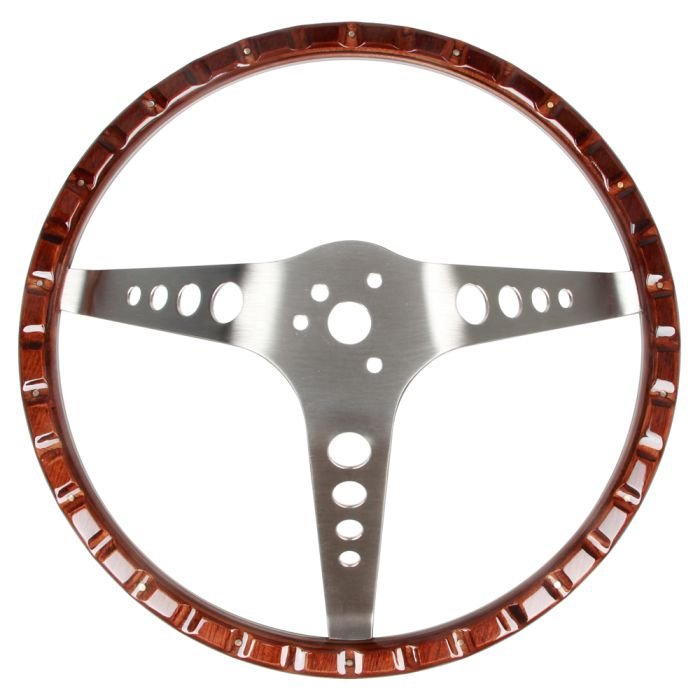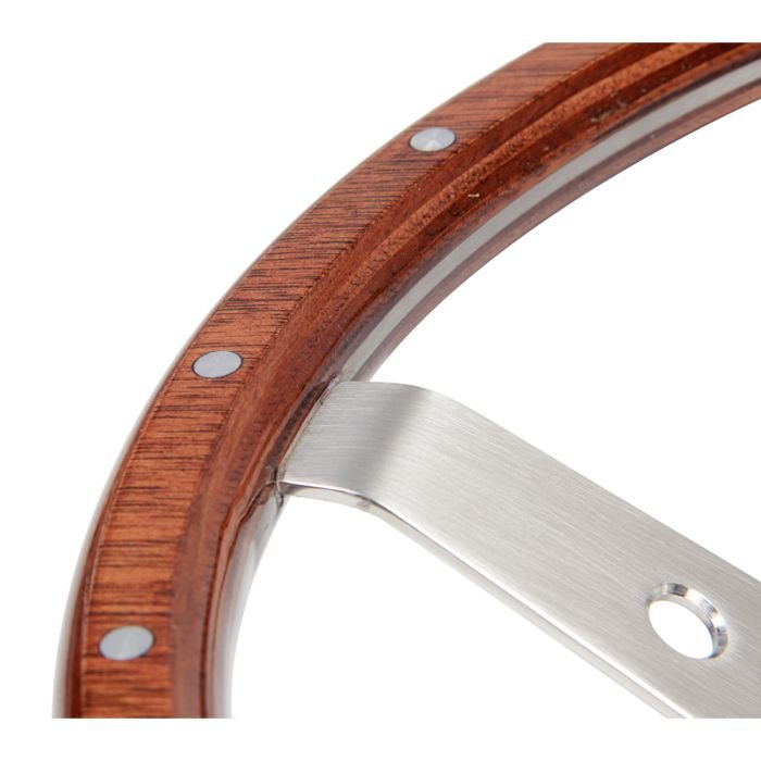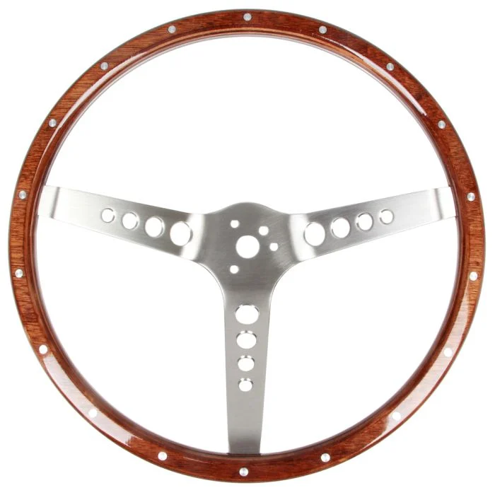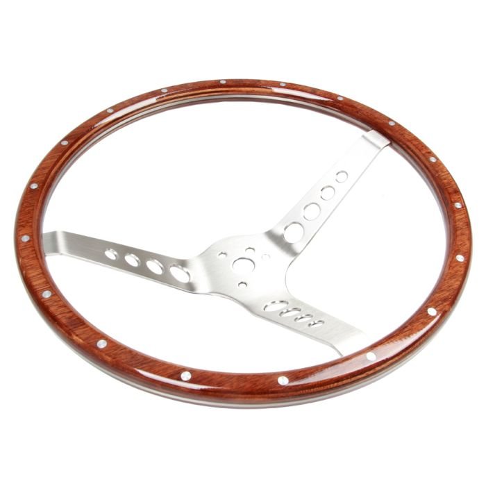 Classics Steering Wheel 14″ Stainless Steel Woodgrain With 4-Hole Spokes For 3-Bolt Hub