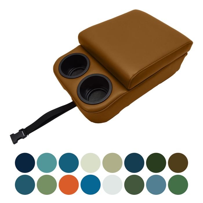 Distinctive Industries Madrid Grain Vinyl Deluxe Bench Seat Console for 1960-1974 Chevy C10s. This bench seat console features a large storage compartment and built-in cup holders. It has classic styling using vinyl with a Madrid grain pattern. It holds you small items within reach while adding bold style to your interior!