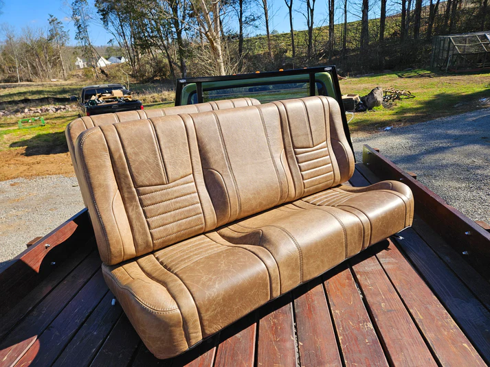 Proudly built in the USA and delicately hand-sewn and assembled in East Tennessee, each seat is meticulously handcrafted to complement your specific build. With our finest European-sourced leather, handpicked for its supreme quality, we offer an extensive palette of colors such as classic black, bold red, sophisticated parchment, and the distinctive UV protected “KR” style distressed. We are excited to offer these premium seats starting at $3,200 in any of our standard colors. Custom colors and two-tone options are available for a nominal additional cost.