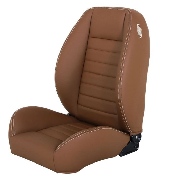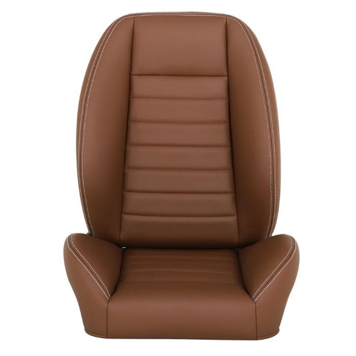 Pair of TMI Pro Series Cruiser Collection Low-Back Saddle Brown Vinyl Bucket Seats. For timeless, sporty style in your classic vehicle, invest in these Low-Back Saddle Brown Bucket Seats from TMI’s Pro Series Cruiser Collection! Available in brown or white stitching, these classy seats come fully assembled and ready to bolt on. They’re built with an all-metal frame to allow a full range of motion from tilting and sliding to reclining. Plus, they’re wrapped in high-density foam to boost their strength and longevity!